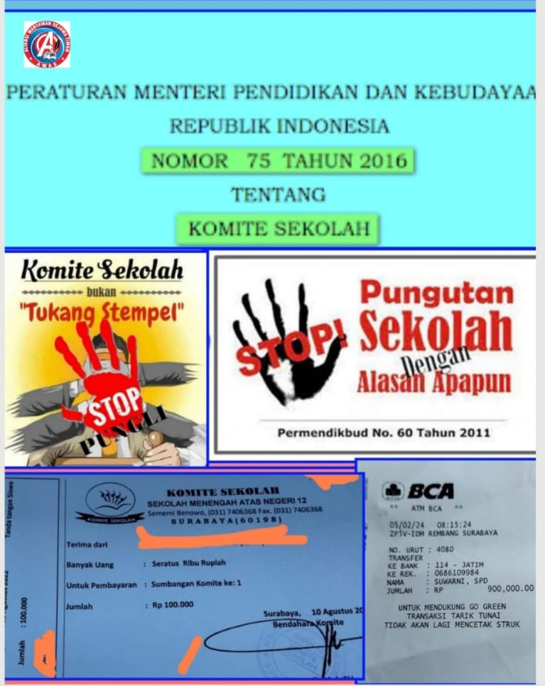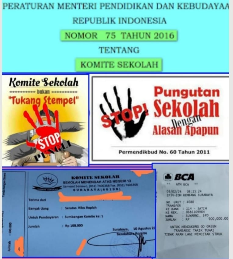“Seperti halnya salah seorang, orang tua siswa SMA Negeri 12 Surabaya, dihadapkan pada beban finansial yang cukup berat, banyaknya iuran yang selalu menggunakan kepanjangan tangan seperti Komite. Meski dalam rapat menyetujui dikarenakan tidak ada pilihan selain mengikuti mayoritas agar mental anak terjaga dan akhirnya memicu kesenjangan sosial.