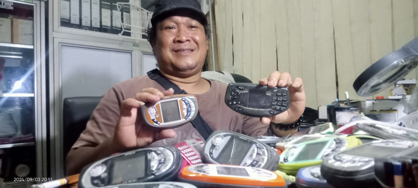 “Saya dari dulu senang hape jadul,dan kebetulan saya suka service sendiri awal tahun 2000an.” Ceritanya kepada wartawan Globalindo.
