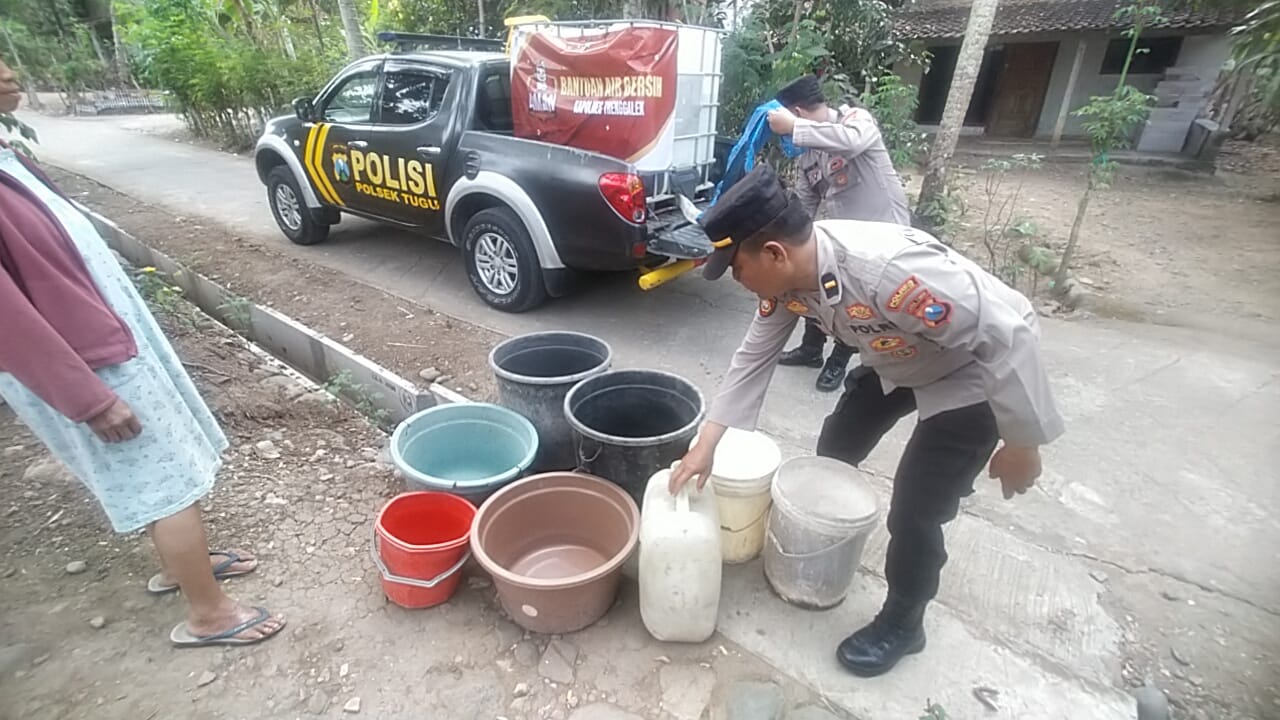 Melihat kondisi itu, Polres Trenggalek dan seluruh jajaran Polsek tak pernah lelah berupaya membantu warga Masyarakat dalam memenuhi kebutuhan air bersih tiap hari.