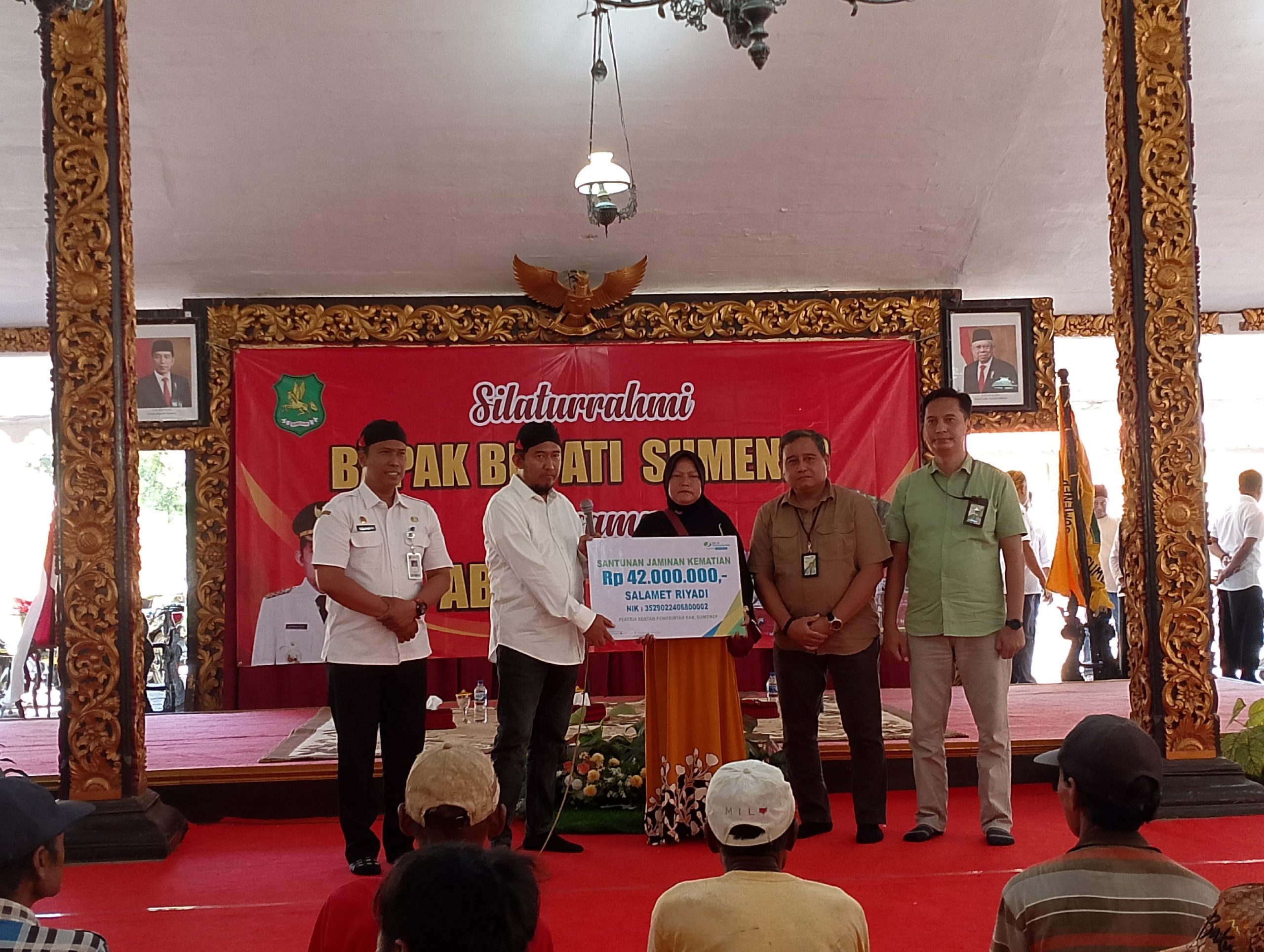 Di kesempatan yang sama, Bupati Sumenep Achmad Fauzi Wongsojudo juga menyerahkan santunan Jaminan Kematian atau JKM kepada peserta BPJS Ketenagakerjaan yang meninggal dunia kepada ahli waris dari saudara Salamet Riyadi warga kalianget sebesar Rp. 42.000.000,- sebagai peserta BPJS Ketenagakerjaan.