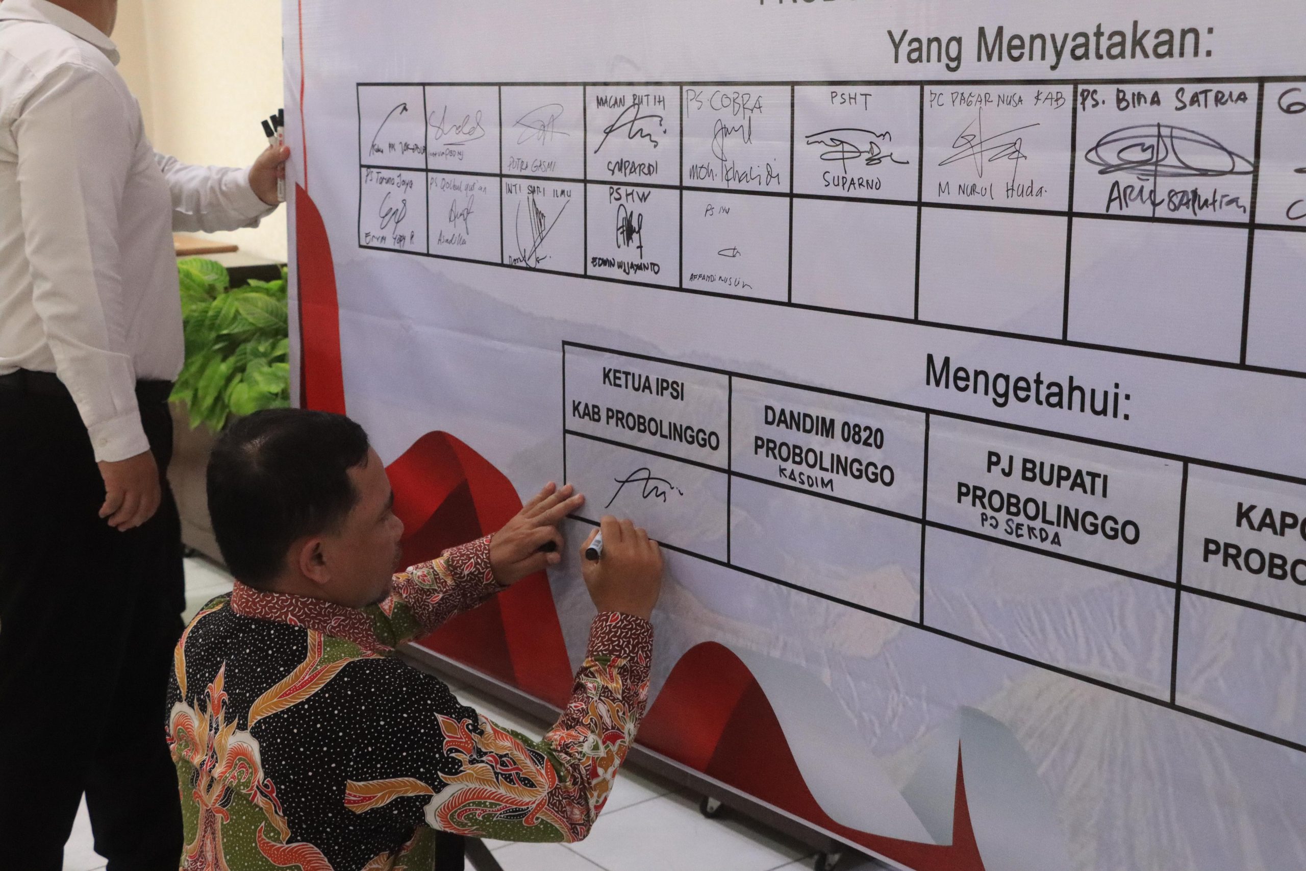 Disaksikan oleh Kapolres Probolinggo AKBP Wisnu Wardana, Kasdim 0820, Kadispora, Ketua Koni, Ketua Pencak Silat Se-Kabupaten Probolinggo, Ikrar tersebut dilaksanakan di Gedung Rupatama Parama Satwika, Mapolres Probolinggo, Kamis (31/10/2024).