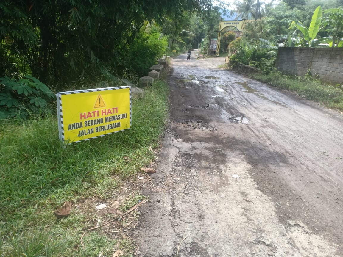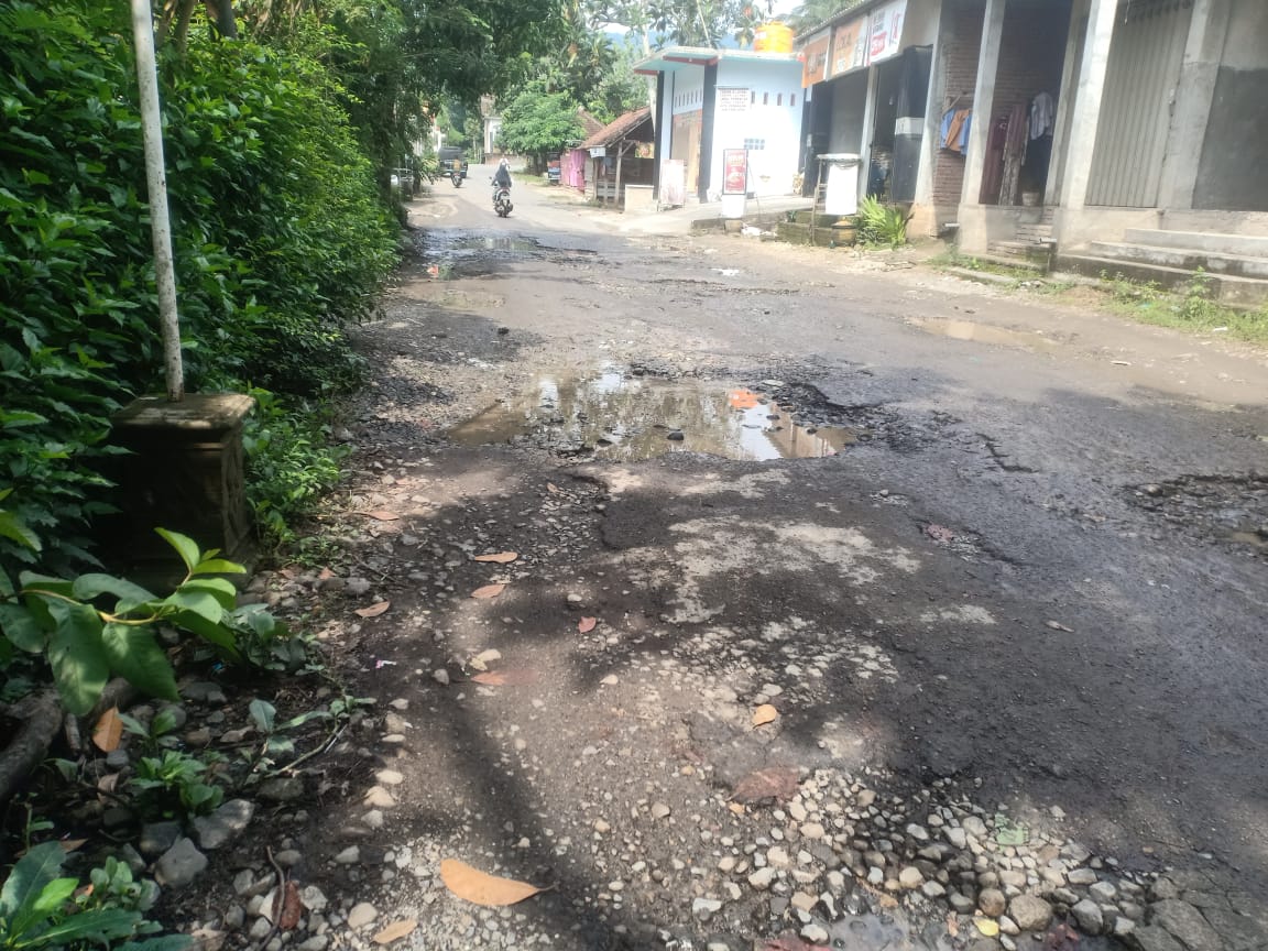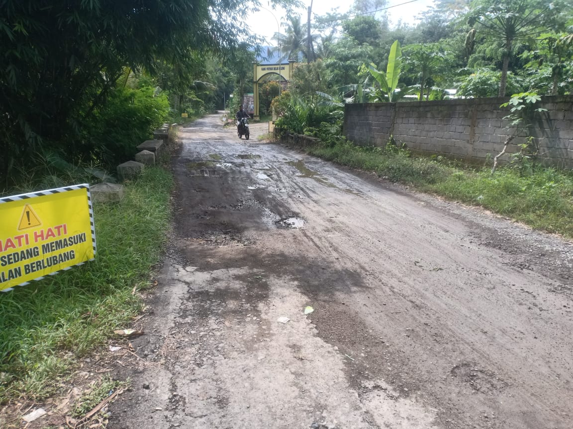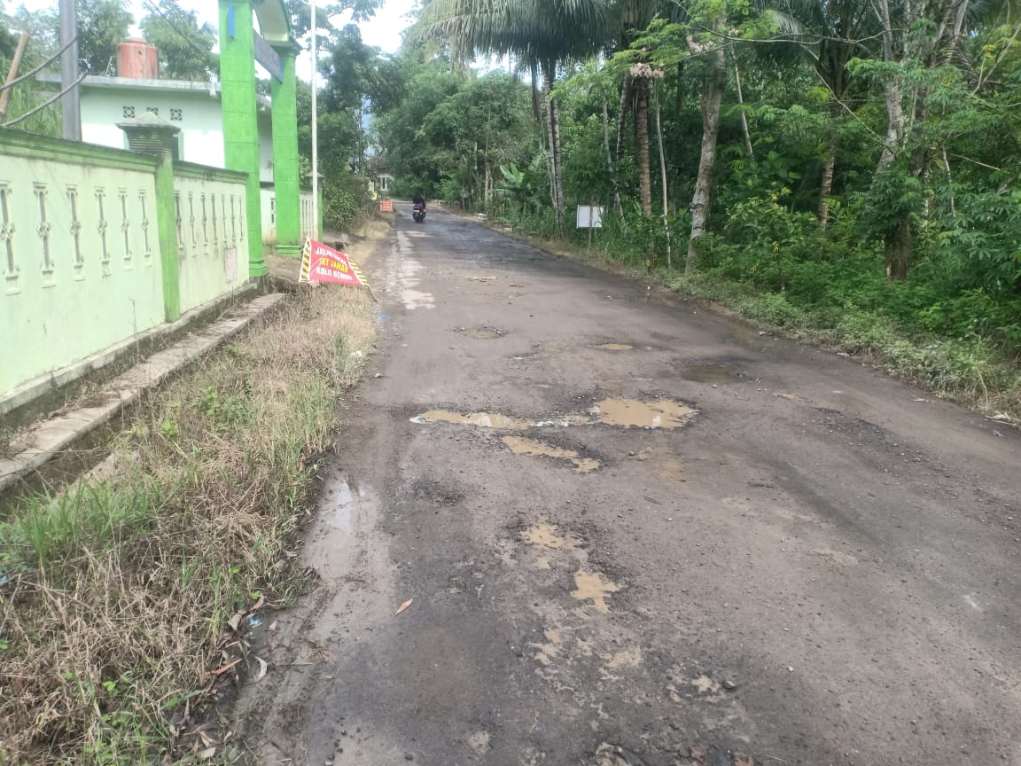 Jalan terlalu parah untuk dilewati,sekitar 1 kilometer jalan nampak berlubang- lubang dengan ukuran sekitar 10-15 cm kedalamannya.