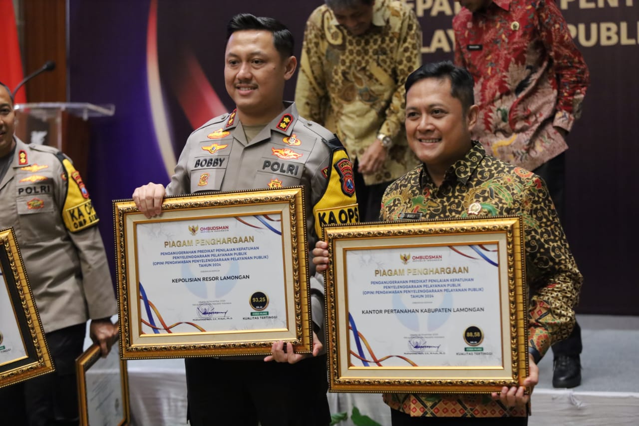 LAMONGAN –Globalindo.Net// Polres Lamongan Polda Jatim kembali mencatatkan prestasi gemilang dengan meraih juara umum dan penghargaan dari Ombudsman Republik Indonesia Kategori A untuk inovasi pelayanan publik (Yanlik) tahun 2024.