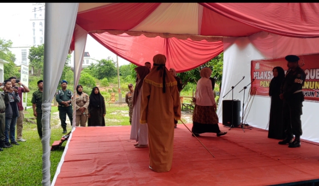 Pelaksanaan ini merupakan bagian dari eksekusi hukuman terhadap pelanggar Qanun Aceh Nomor 6 Tahun 2014 tentang Hukum Jinayat Qanun ini mengatur sanksi dalam tiga pilihan, yaitu cambuk, penjara dan denda emas.