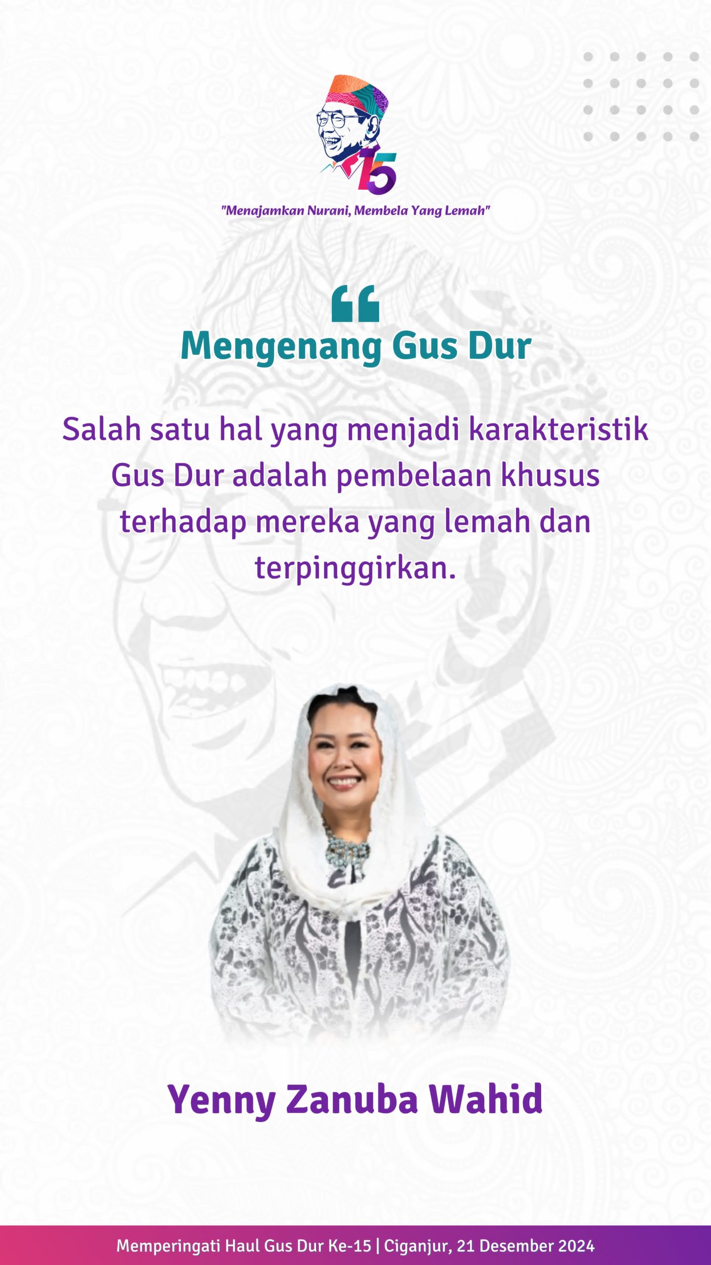 Yenny Wahid : “Haul ke-15 Gus Dur Sampaikan Pesan Kuat Keberpihakan Terhadap Mereka yang Lemah”