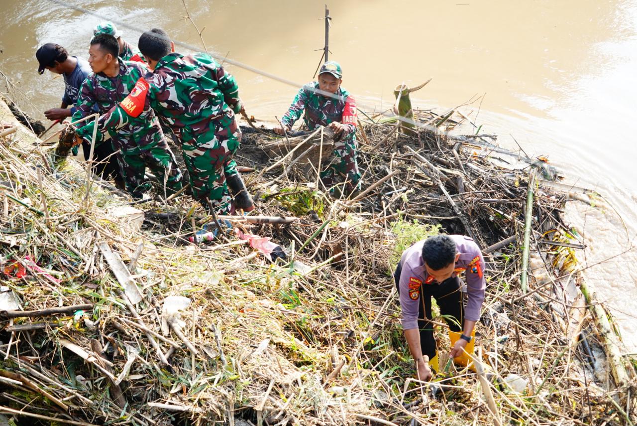 “Petugas gabungan bersama warga bekerja keras membersihkan sampah dan bambu yang cukup besar. Meski aliran sungai deras dan alat berat terbatas, semua kendala berhasil diatasi dengan peralatan seadanya,” jelas AKP Karyadi.