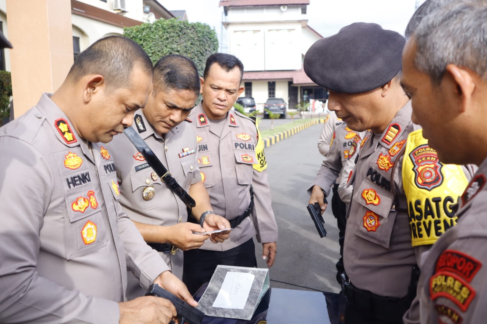 Kapolres Lhokseumawe AKBP Henki Ismanto, S.I.K melalui Kabag Logistik Polres Lhokseumawe, AKP Hanafiah menjelaskan bahwa pemeriksaan ini merupakan bagian dari upaya pengawasan rutin terhadap inventarisasi senjata api yang digunakan oleh personel.