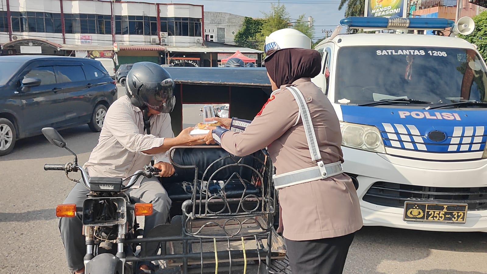 Selain berbagi makanan, personel Satlantas juga memanfaatkan momen ini untuk memberikan imbauan keselamatan berlalu lintas. Para pengemudi becak motor diajak untuk selalu mematuhi aturan berlalu lintas demi keselamatan mereka dan pengguna jalan lainnya, pungkasnya.