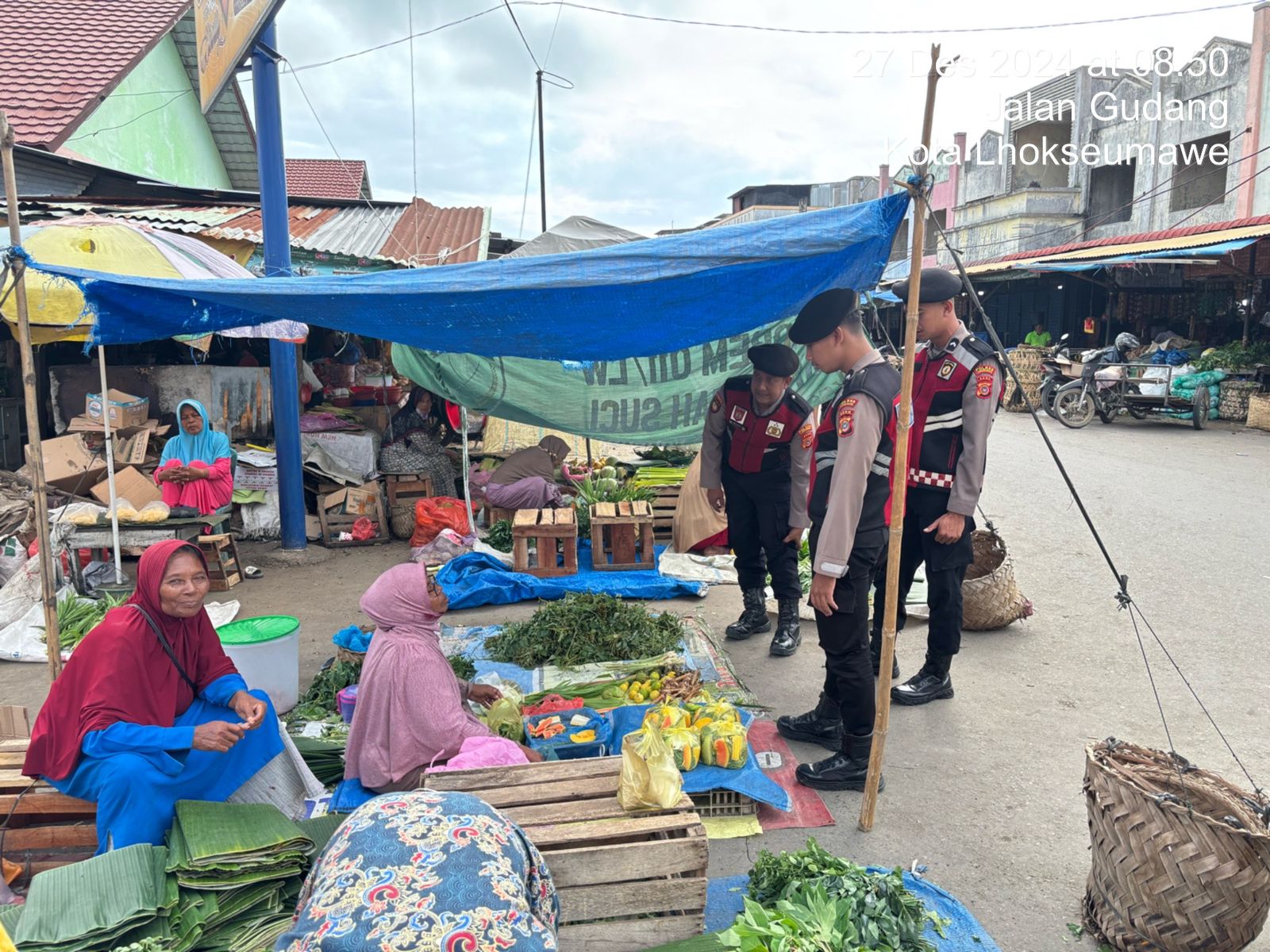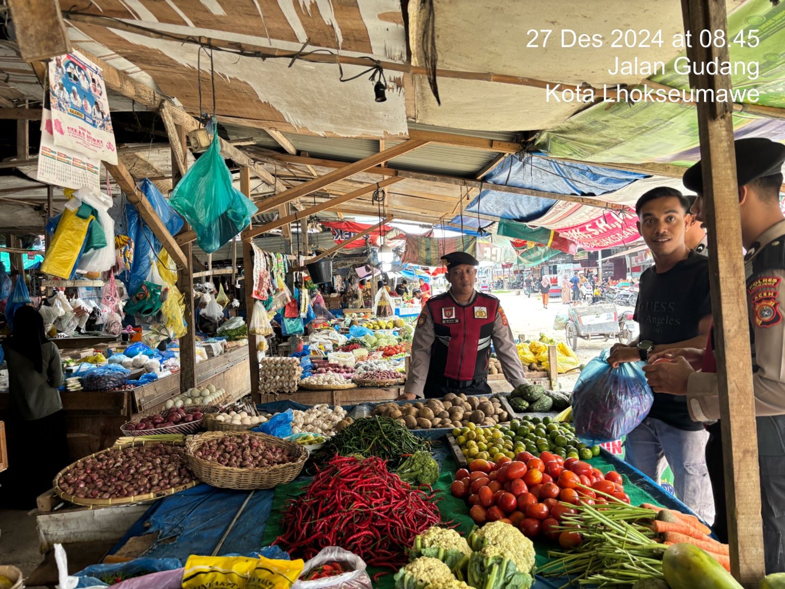 Lhokseumawe, Globalindo.Net // Guna memastikan kenyamanan dan keamanan aktivitas di pasar tradisional, Polres Lhokseumawe melalui personel Sat Samapta mengintensifkan patroli rutin di sejumlah titik, Jum’at (27/12/2024) pagi.