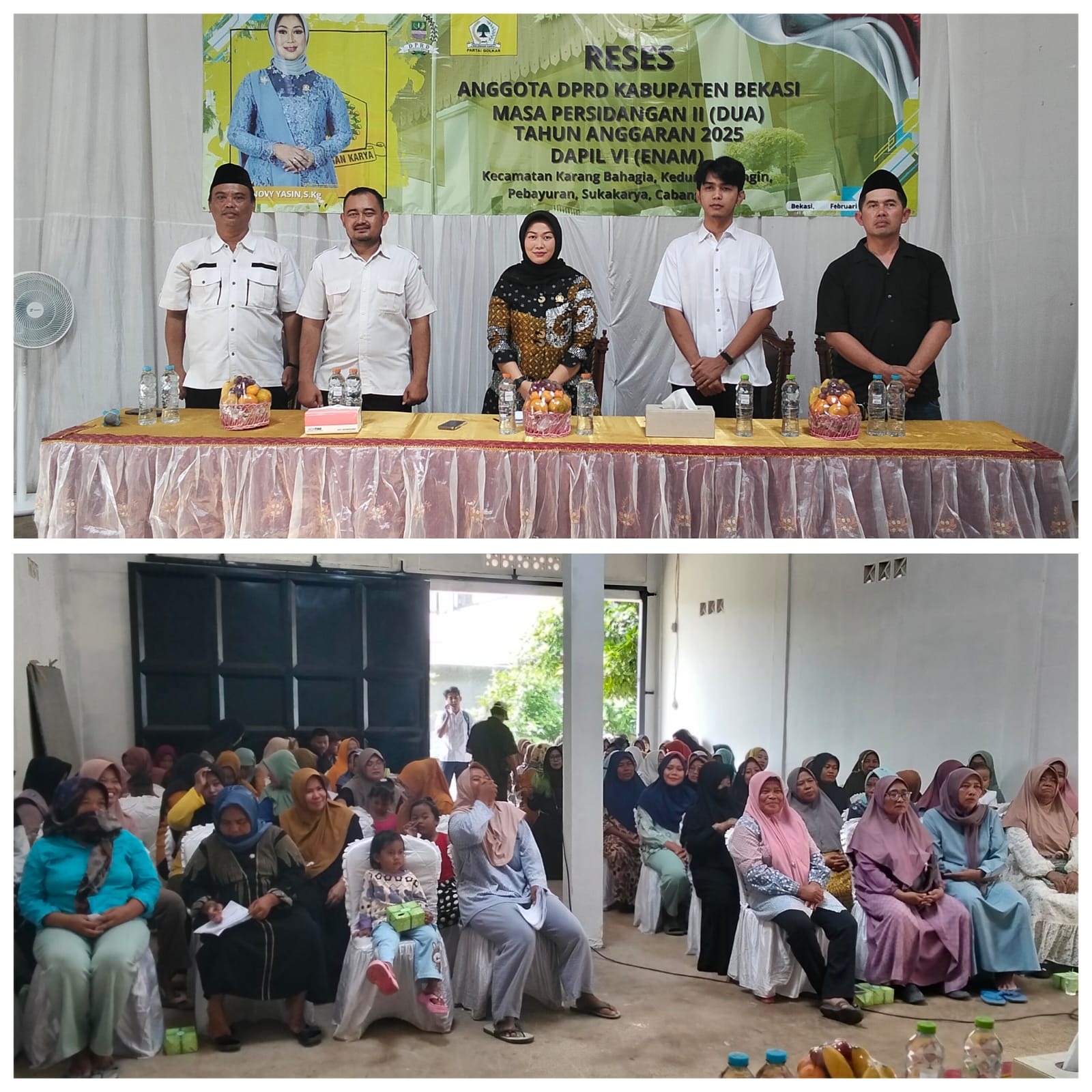 Novy Yasin, S.Kg Anggota DPRD Kabupaten Bekasi Dapil 6 dari Fraksi Partai Golkar melaksanakan reses masa persidangan 2 (dua) Kabupaten Bekasi di aula kediamannya di Kampung Teluk Haur RT 03/01 Desa Karanghaur, Rabu 12/02/2025.