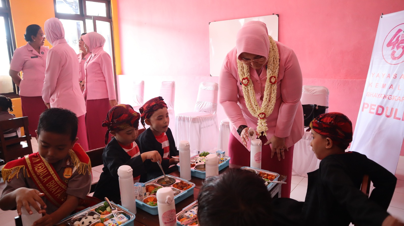 Ketua YKB Jatim Berbagi Makan Bergizi di TK Kemala Bhayangkari 81 Sumenep.