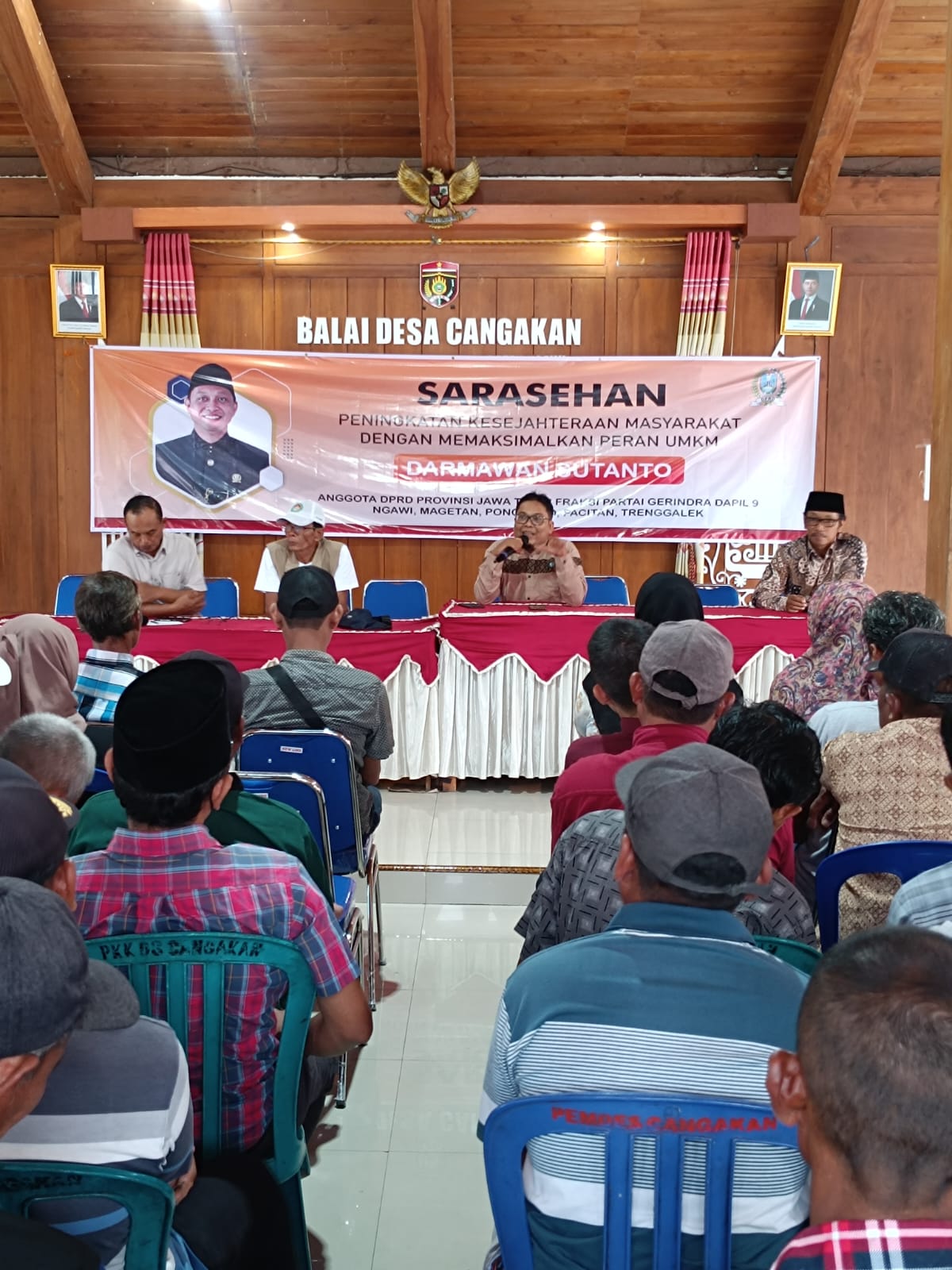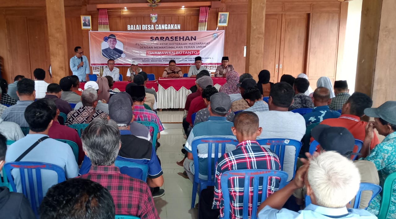 Ngawi, Globalindo.Net// Selasa 10 Maret 2025 – Dalam upaya meningkatkan kesejahteraan masyarakat, anggota DPRD Provinsi Jawa Timur, Darmawan Sutanto, menggelar kegiatan Sosialisasi dan Diskusi Solowsemiran di Desa Cangakan, Kecamatan Kasreman, Kabupaten Ngawi. Acara yang mengusung tema “Peningkatan Kesejahteraan Masyarakat dengan Memaksimalkan Peran UMKM” ini disambut antusias oleh warga dan para pelaku usaha mikro, kecil, dan menengah (UMKM) setempat.