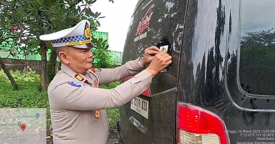 Surabaya,-Globalindo.Net// Semenjak Kapolri Jendral Polisi membuka layanan Hotline 110 menjelang mudik lebaran 2025, seluruh jajaran terus melaksanakan sosialisasi dan himbauan dengan cara menempelkan stiker dengan Slogan ” Mudik Aman, Keluarga Nyaman” di kendaraan umum. Seperti yang terlihat di Jalan Laksda M Nasir, Kecamatan Pabean Cantikan Surabaya, pada hari Sabtu tanggal.(16 /03/25).