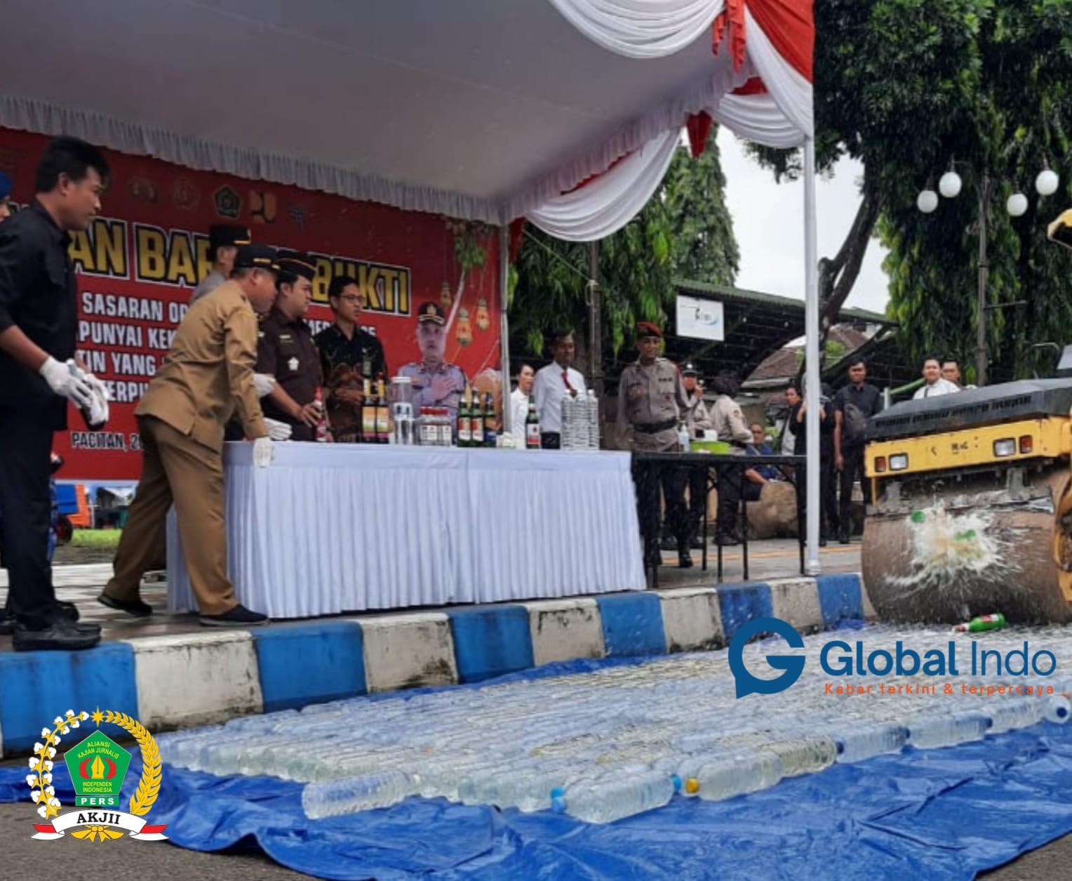 Pacitan –Globalindo.Net// Suasana di Alun-alun Pacitan terlihat berbeda dari biasanya. Sejumlah petugas kepolisian bersama jajaran Forkopimda tampak berbaris rapi di tengah lapangan. Di hadapan mereka, ratusan botol miras, jeriken berisi ciu, dan paket sabu siap dimusnahkan.