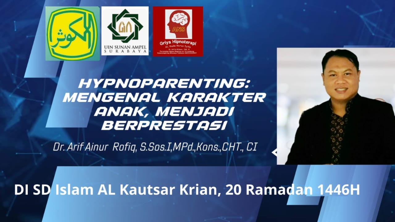 Krian,20/03/2025.Globalindo.Net// Dr. Arif Ainur Rofiq,S.Sos.I,MPd,Kons.,CHt.,CI. (Dosen Bimbingan dan Konseling Islam UINSA, Trainer mandiri lisensi Indonesian Hypnosis Centre dan owner griya hipnoterapi ANS Sidoarjo ), dalam ceramah Hypnoparenting di SD Islam Al Kautsar krian, mengatakan bahwa anak bukanlah miniatur orang dewasa, jangan menyamakan anak dengan orang dewasa.