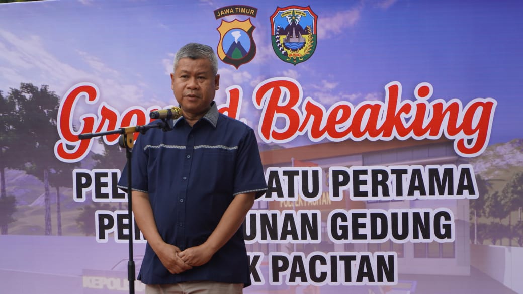– Pada hari yang cerah ini, marilah kita panjatkan puji dan syukur ke hadirat Allah SWT. Berkat limpahan rahmat, hidayah, dan karunia-Nya, kita semua dapat berkumpul di lokasi pembangunan Kantor Mapolsek Pacitan dalam keadaan sehat dan berbahagia untuk menyaksikan bersama acara Peletakan Batu Pertama Pembangunan Kantor Polsek Pacitan.