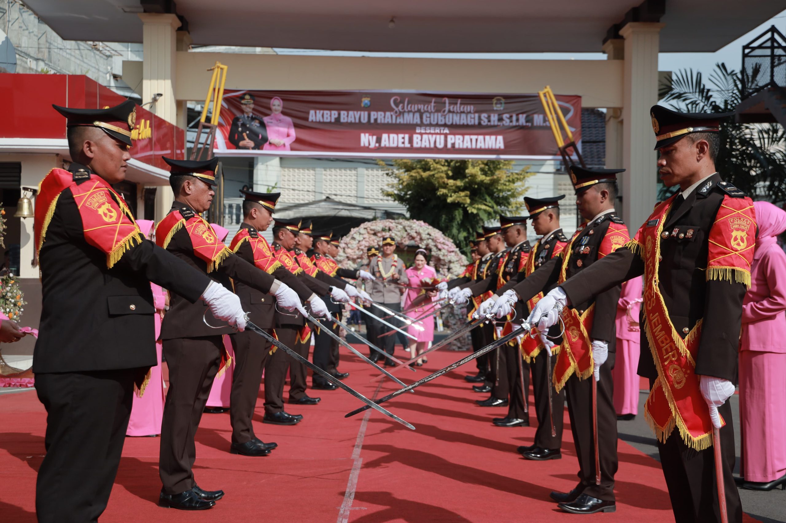 Jember – Globalindo.Net//  Kedatangan Kapolres Jember yang baru, AKBP Bobby A Condroputra, S.H., S.I.K., M.Si., disambut dengan prosesi Tradisi Pedang Pora yang penuh khidmat di halaman Mapolres Jember, Kamis, (17/4/2025)