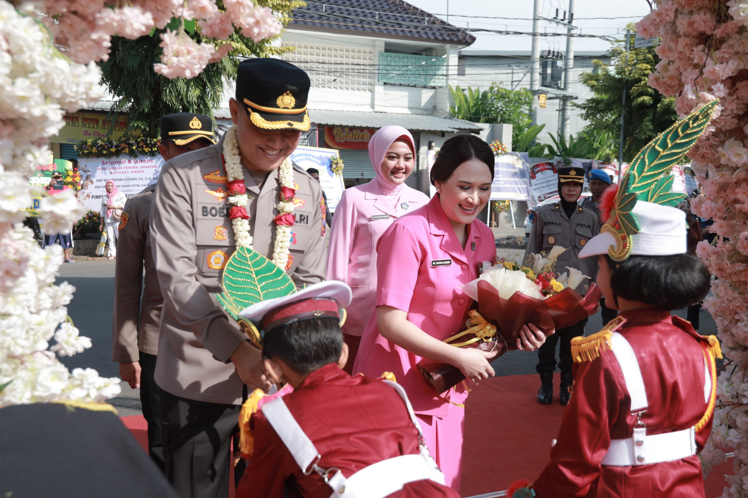 Penyambutan dimulai dari akan memasuki gerbang utama Mapolres dengan iringan Mars Bhayangkara dari Drumbend Kabupaten Jember dan sambutan hangat AKBP Bobby oleh polisi cilik yang mengalungkan bunga sebagai simbol penerimaan.