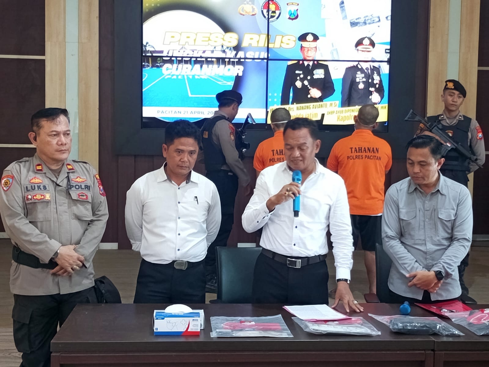 Pacitan – Globalindo.Net //  Satuan Reserse Kriminal (Satreskrim) Polres Pacitan menggelar konferensi pers di Gedung Graha Bhayangkara, Senin (21/04/2025), terkait pengungkapan kasus pencurian kendaraan bermotor (curanmor) yang terjadi di wilayah Kecamatan Tulakan, Kabupaten Pacitan.