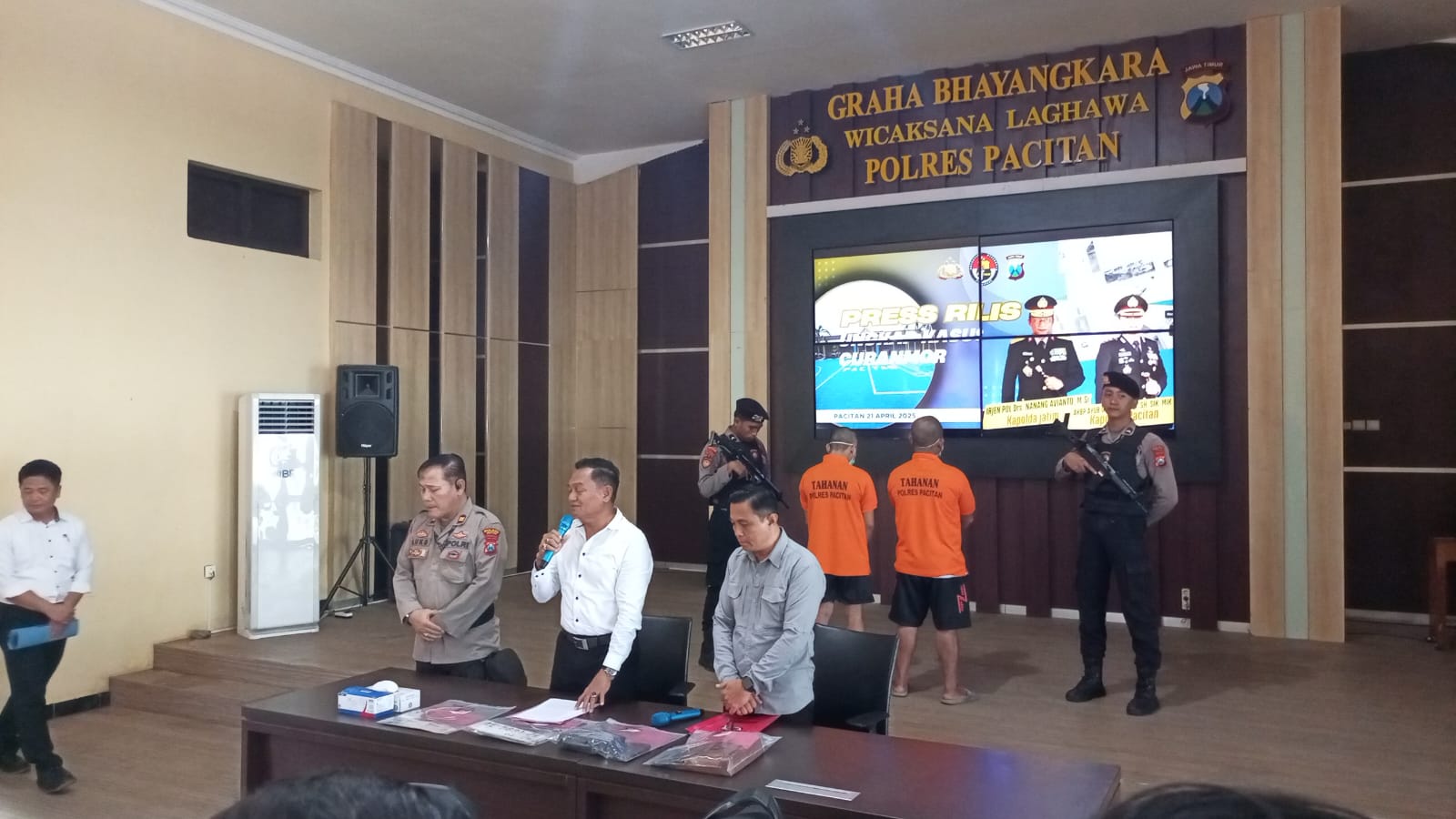 Satuan Reserse Kriminal {Satreskrim} Polres Pacitan Menggelar Konferensi Pers Di Gedung Graha Bhayangkara
