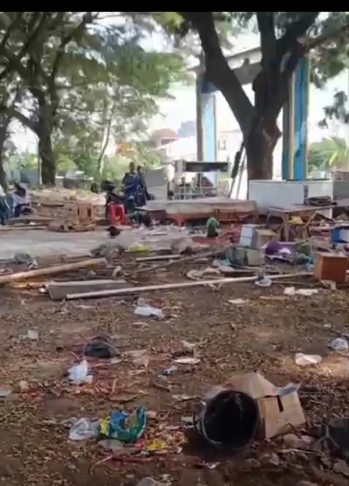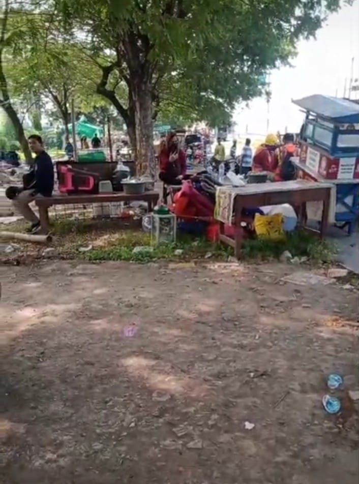 Pedagang Kaki Lima (PKL) yang berada dibantu-bantu di sisi barat hingga timur yang masih buka tidak tertibkan ada apa oleh satpol PP kota Surabaya dengan kecamatan Kenjeran.(25/4/25).