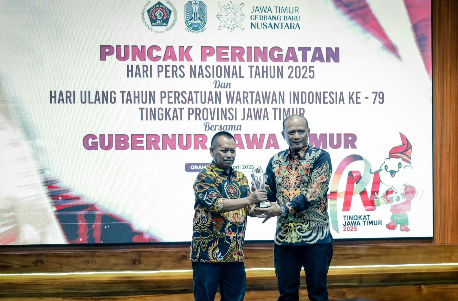 Penghargaan tersebut diserahkan langsung oleh Ketua PWI Jatim Lutfil Hakim kepada Kapolda Jatim,Irjen Pol Nanang Avianto.