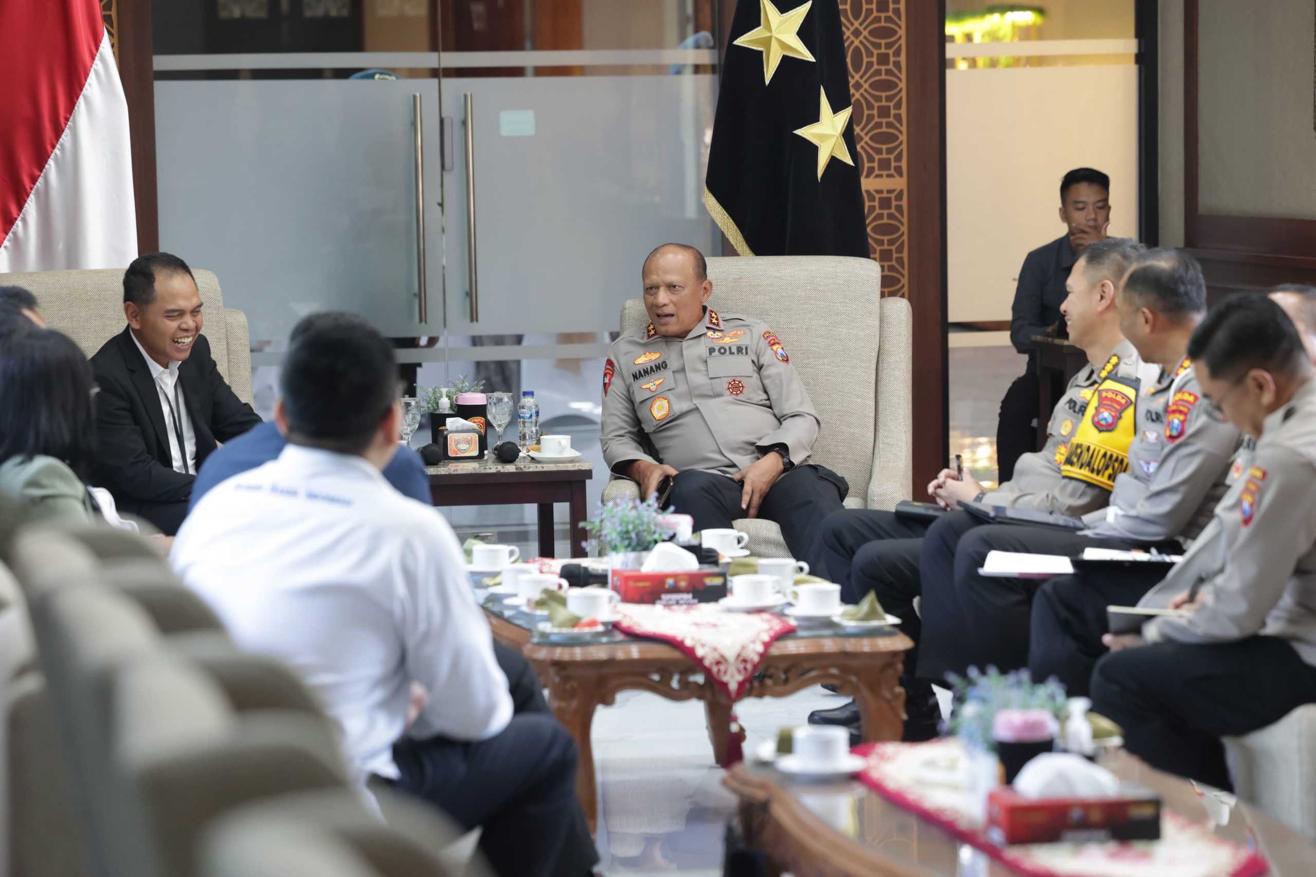 SURABAYA – Globalindo.Net// Kapolda Jawa Timur Irjen Pol Drs. Nanang Avianto, M.Si., bersama Pejabat Utama (PJU) Polda Jatim menerima audiensi dari Regional CEO (RCEO) BRI Surabaya dan RCEO BRI Malang di Mapolda Jatim pada Senin (5/5/2025).