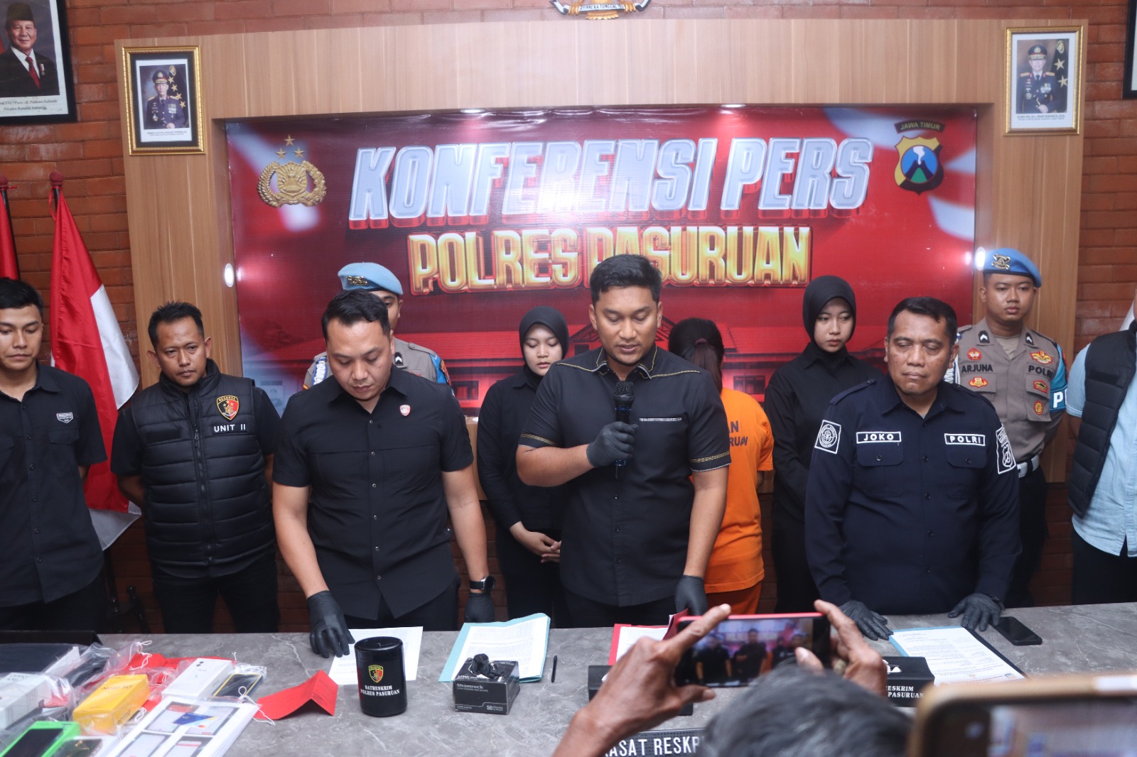 PASURUAN – Globalindo.Net// Seorang ibu rumah tangga berinisial AK (29), warga Lumajang, ditetapkan sebagai tersangka dalam kasus tindak pidana penipuan dengan modus penawaran kredit barang elektronik melalui aplikasi pinjaman online.