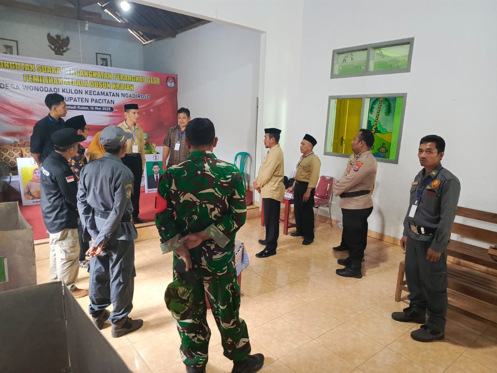 Sementara itu peran TNI Polri dalam hal ini Koramil Dan Polsek Ngadirojo turut melaksanakan pengamanan dalam pelaksanaan proses pemungutan suara tersebut.