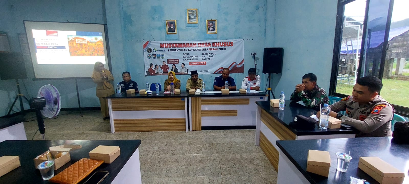 Pacitan~Globalindo.Net// Babinsa Desa Jetis Koramil 0801/03 Arjosari Sertu Puji menghadiri musyawarah Desa (musdes)dalam rangka pembentukan Koperasi Merah Putih yang berlangsung di Balai Desa Jetis, Kecamatan Arjosari, Kabupaten Pacitan. Selasa (27/05/2025).
