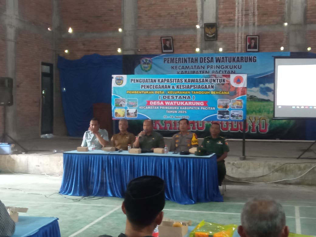 Pacitan,- Danramil 0801/12 Pringkuku dalam hal ini di wakili Peltu Lilik Susanto menghadiri pelaksanaan kegiatan Pembukaan Pembentukan Desa Tangguh bencana di Desa Watukarung kec. Pringkuku, Kab. Pacitan. Rabu (11/06/2025).