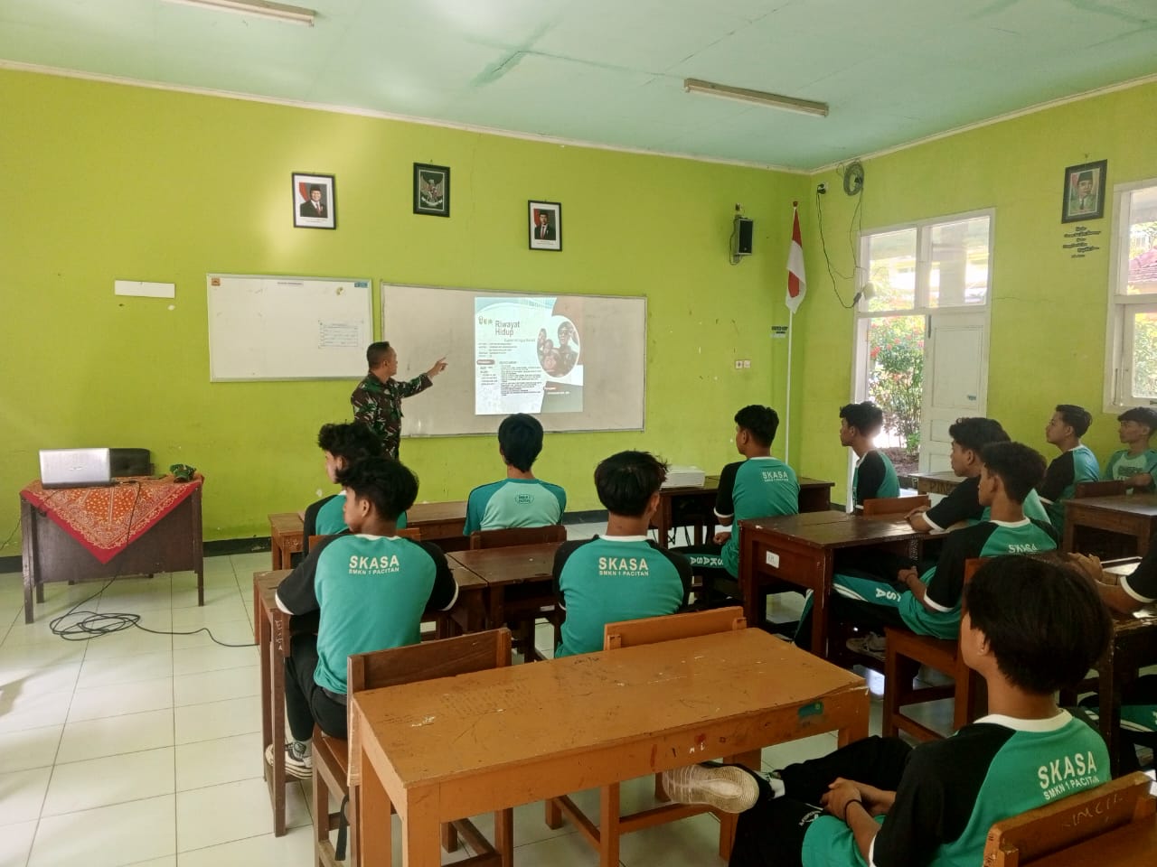 Pacitan, – Guna meningkatkan pembentukan karakter dan meningkatkan kedisiplinan, Pasiops Kodim 0801/Pacitan Kapten Inf Agus Nuriadi memberi program pembinaan khusus pada siswa siswi SMK N 1 Pacitan dengan tema “Kedisiplinan”,