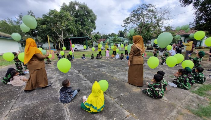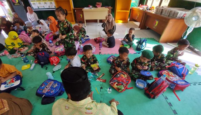 Pacitan, – Ketua Persit KCK cab.XV Dim Pacitan Ny. Ajeng Musahirul di dampingi ibu-ibu persit KCK cab.XV Dim Pacitan berikan Materi Pengenalan Lingkungan Sekolah (MPLS) kepada siswa siswi ajaran baru tahun 2025 TK Kartika lV- 18 bertempat di Makodim 0801/Pacitan jln.Letjend Suprapto no.42 Barean, Baleharjo, Kec/Kab.Pacitan, Senin (14/7/2025).