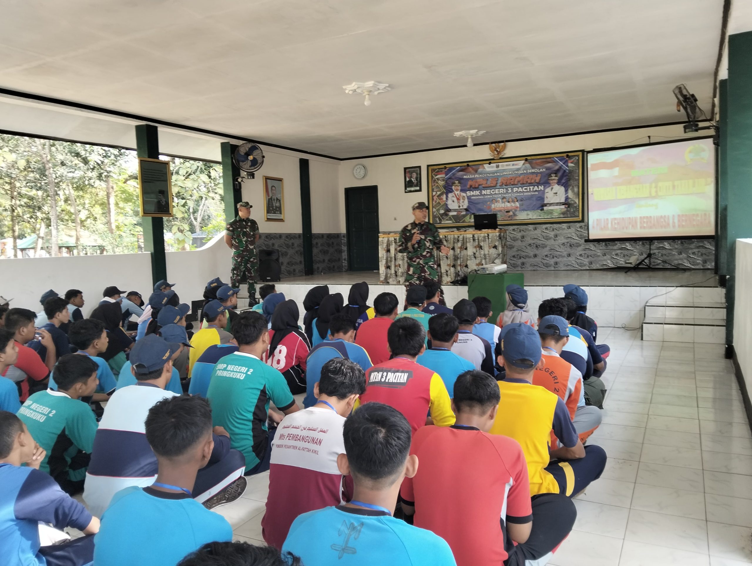 Ratusan siswa baru SMKN 3 Pacitan tampak antusias mengikuti kegiatan Masa Pengenalan Lingkungan Sekolah (MPLS) yang kali ini diisi dengan materi wawasan kebangsaan dan latihan kedisiplinan oleh jajaran TNI Kodim 0801/Pacitan.