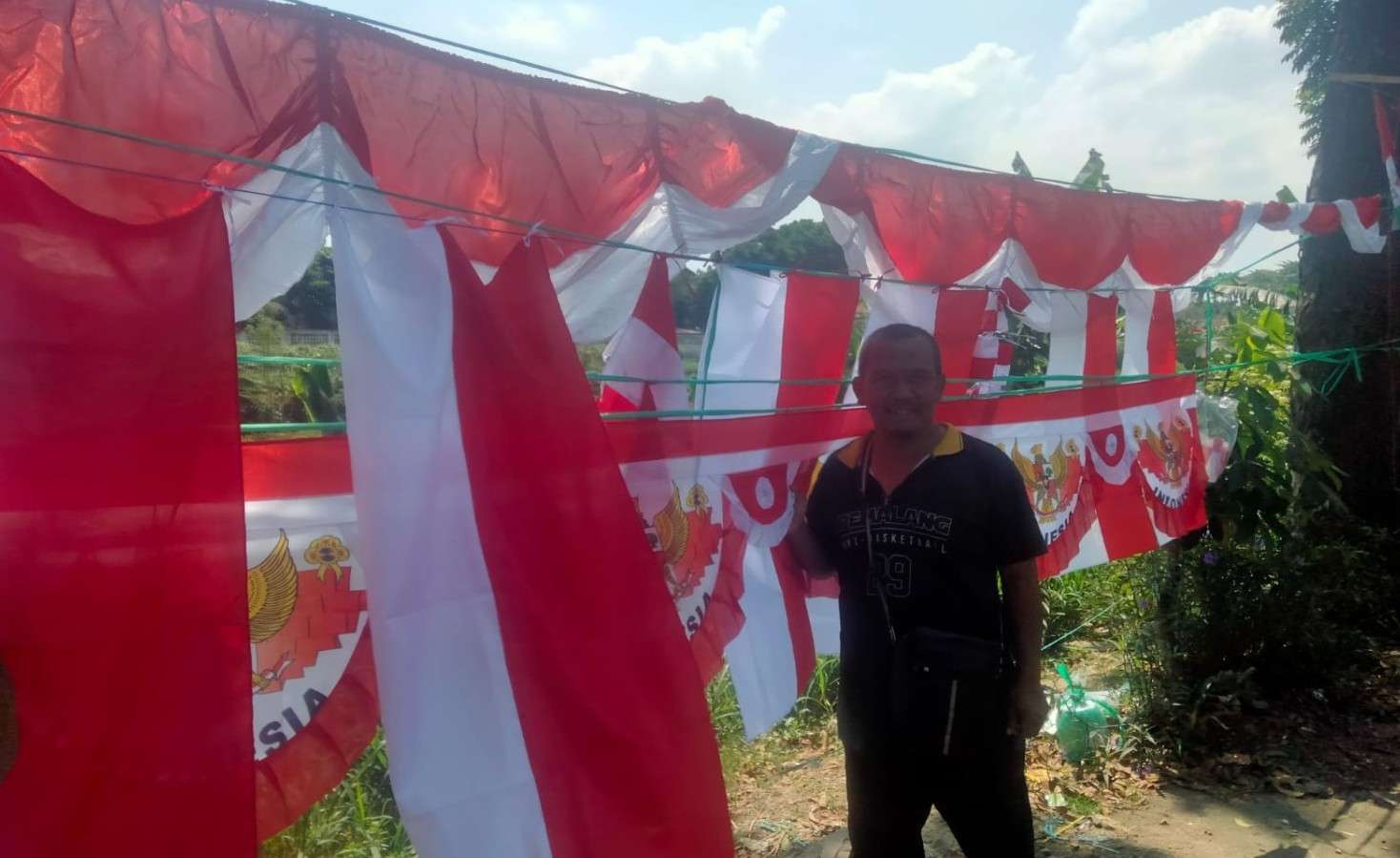 Para pedagang menjual berbagai aksesoris kemerdekaan, seperti bendera merah putih, umbul-umbul, background, dan aksesoris lainnya.