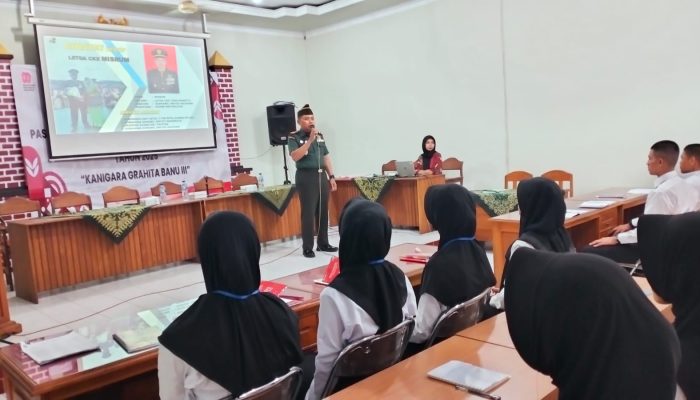 Pacitan, – Untuk memastikan kesiapan para calon paskibraka kabupaten Pacitan tahun 2025 dalam menjalankan tugas mulia, Danramil 0801/03 Arjosari Letda Cke Misrum memberikan Materi Wawasan Kebangsaan dan Nasionalisme, pada Sabtu (2/8/2025) malam bertempat di ruang pertemuan gedung KDPDK Jl. Ahmad Yani No.57 Pacitan.