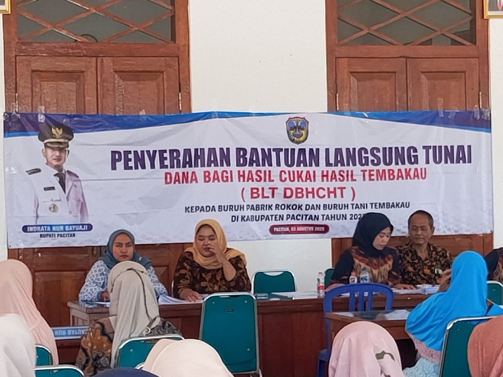 Dalam sambutannya, perwakilan Pemerintah Kabupaten Pacitan menyampaikan bahwa bantuan ini bersumber dari alokasi Dana Bagi Hasil Cukai Hasil Tembakau yang diatur dalam ketentuan perundang-undangan. “BLT DBHCHT diharapkan mampu membantu kebutuhan pokok buruh pabrik rokok dan buruh tani tembakau, sekaligus memacu perekonomian daerah,” ujarnya.