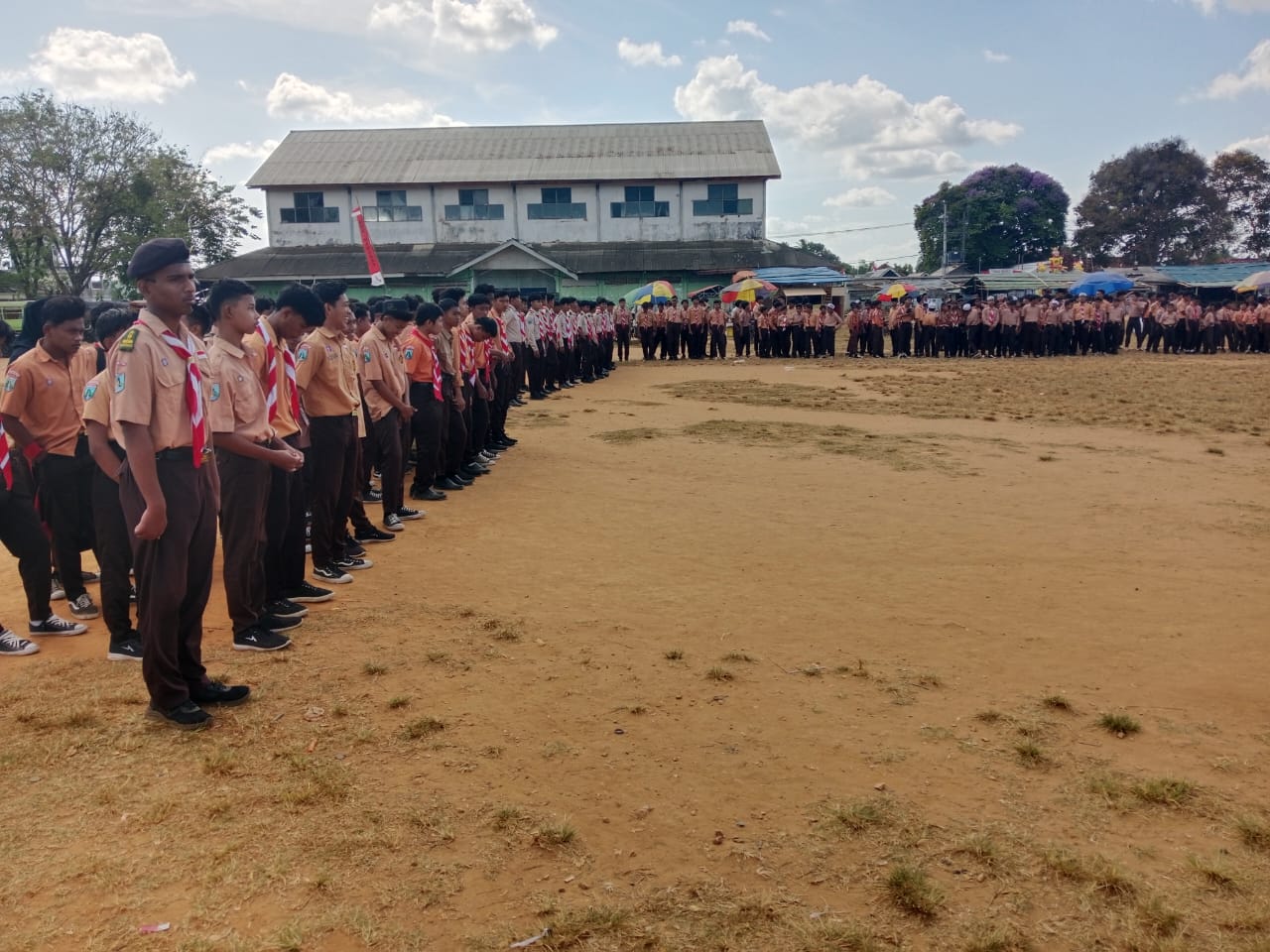 Deru suara komando memecah keheningan pagi, berpadu dengan derap kaki para pramuka yang melangkah mantap. Bendera Merah Putih berkibar anggun di ujung tiang, menjadi simbol tegaknya persatuan dan cita-cita luhur.