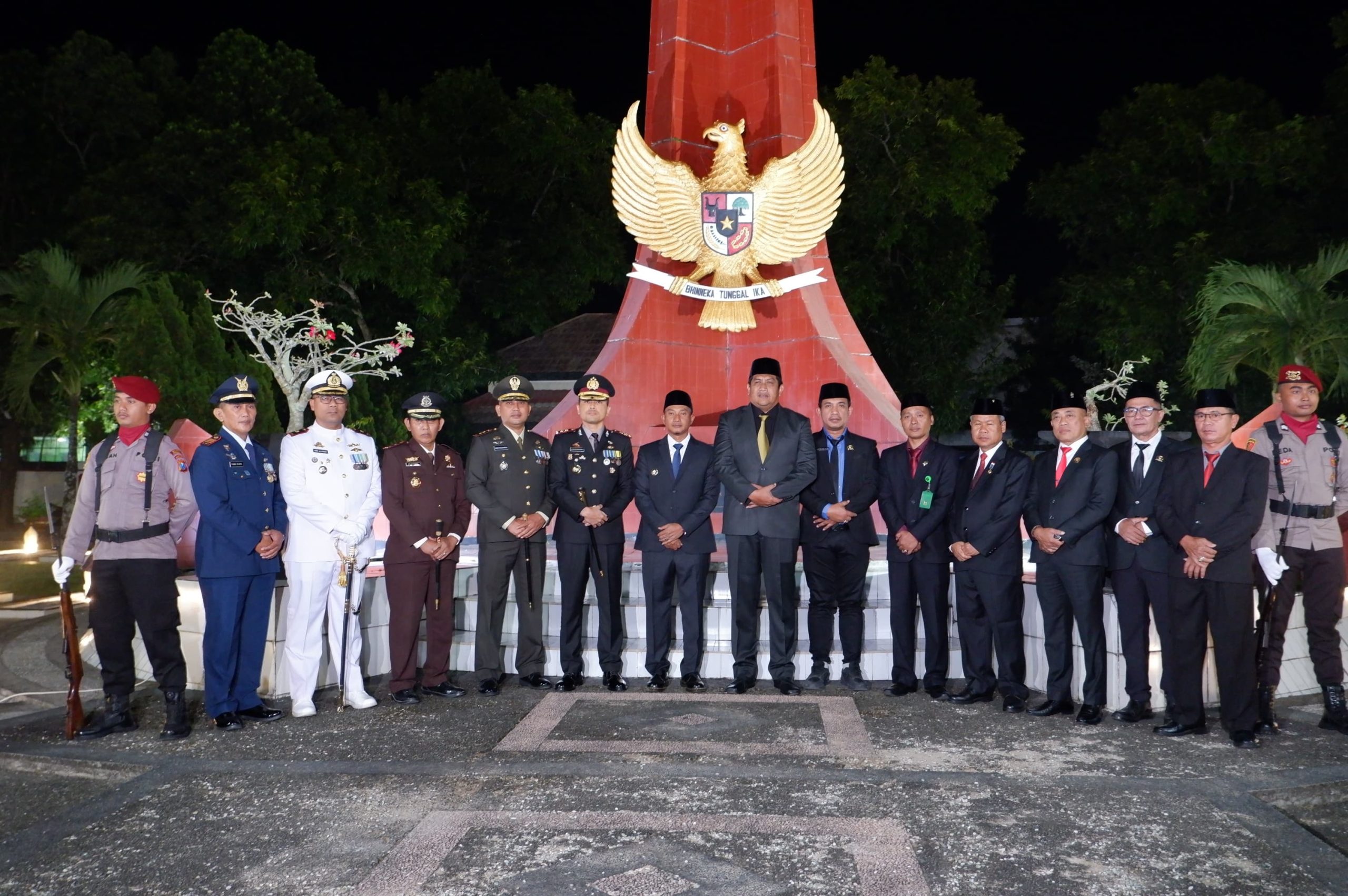 Rangkaian kegiatan berlangsung penuh khidmat, dimulai dari laporan komandan upacara, penyalaan obor, pembacaan naskah apel kehormatan, mengheningkan cipta, hingga doa bersama. Prosesi ditutup dengan penghormatan akhir sebagai bentuk penghargaan tertinggi kepada para pejuang bangsa.