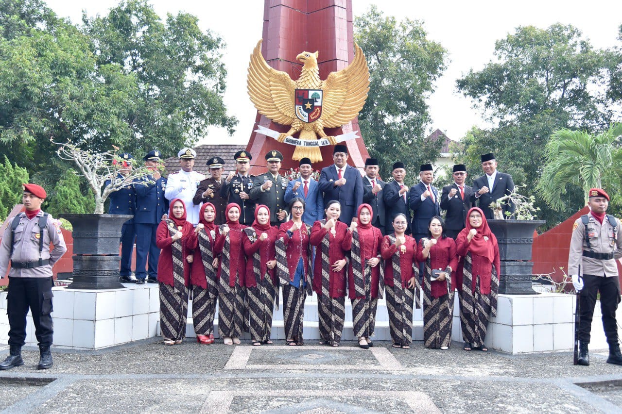 Turut hadir dalam kesempatan ini, Bupati Pacitan Indrata Nur Bayuaji, Wakil Bupati Gagarin, Ketua DPRD Pacitan Arif Setiya Budi, Dandim 0801/Pacitan Letkol Arh. Imam Musahirul, S.H., M.I.P, Danlanal Pacitan Mayor Laut (P) Aris Alfatah, jajaran pejabat TNI-Polri, tokoh veteran, dan unsur Forkopimda lainnya.