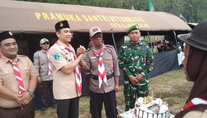 Pacitan, – Danramil 0801/03 Arjosari Letda Cke Misrum hadiri kegiatan upacara pembukaan perkemahan pramuka santri Attarmasie gugus depan 06 113/114 Mts pondok pesantren Tremas yang bertempat di lapangan Desa Gegeran, Kecamatan Arjosari, Kabupaten Pacitan, pada Rabu (27/8/2025).