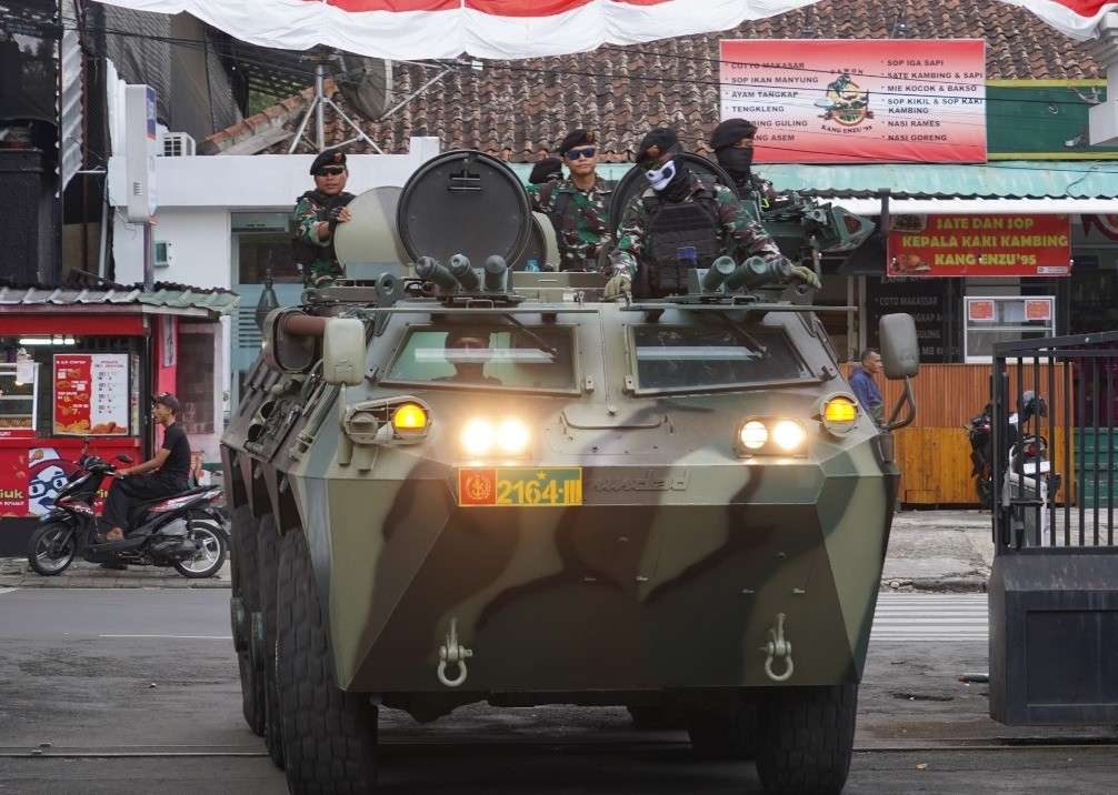 Patroli gabungan tersebut melibatkan satuan-satuan dari berbagai matra TNI, seperti Yon Kav, Yon Armed, Yon Zipur, Arhanud, serta unsur dari Kodim 0618/Kota Bandung yang disiagakan di berbagai titik strategis kota untuk merespons cepat jika terjadi eskalasi.