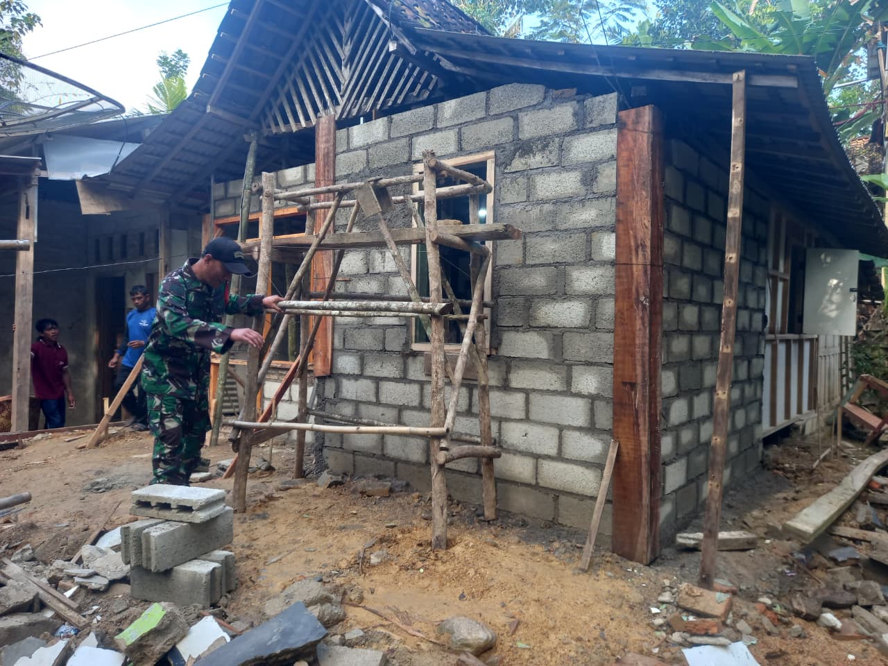 “Kami terus bekerja dan memantau perkembangan perehaban rumah, sesuai perintah dari Komandan Kodim 0801/Pacitan Melalui Danramil 03/Arjosari Letda Cke Misrum, agar kualitas dan waktu penyelesaian tetap terjaga, “ujarnya.
