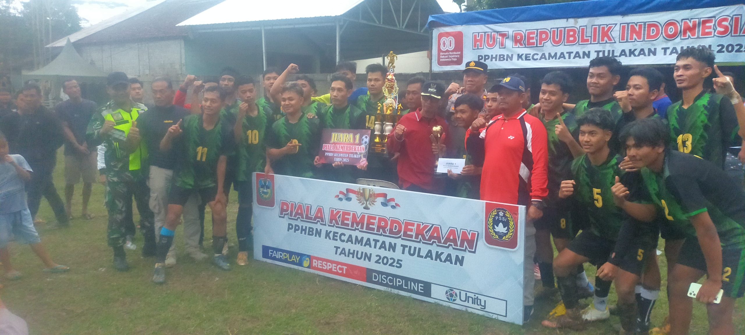 Dalam pengamanan kali ini Koramil 08/Tulakan menurunkan 4 Personil, Polsek kebonagung 6 Personil, Polsek Tulakan 6 Personil, Dengan adanya pengamanan gabungan ini, pertandingan sepak bola Piala Kemerdekaan dalam rangka memeriahkan HUT RI Ke 80 Tahun 2025 dapat berlangsung dengan aman, tertib, dan penuh semangat sportivitas.