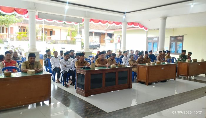 Pacitan, – Danramil (Komandan Rayon Militer) 0801/06 Bandar menghadiri acara doa bersama dengan para Forkopimca Bandar tujuh hari setelah meninggalnya Almarhum Wuriyanto selaku Camat Bandar, yang di gelar di pendopo Kecamatan Bandar, Kabupaten Pacitan, Selasa (9/9/2025).
