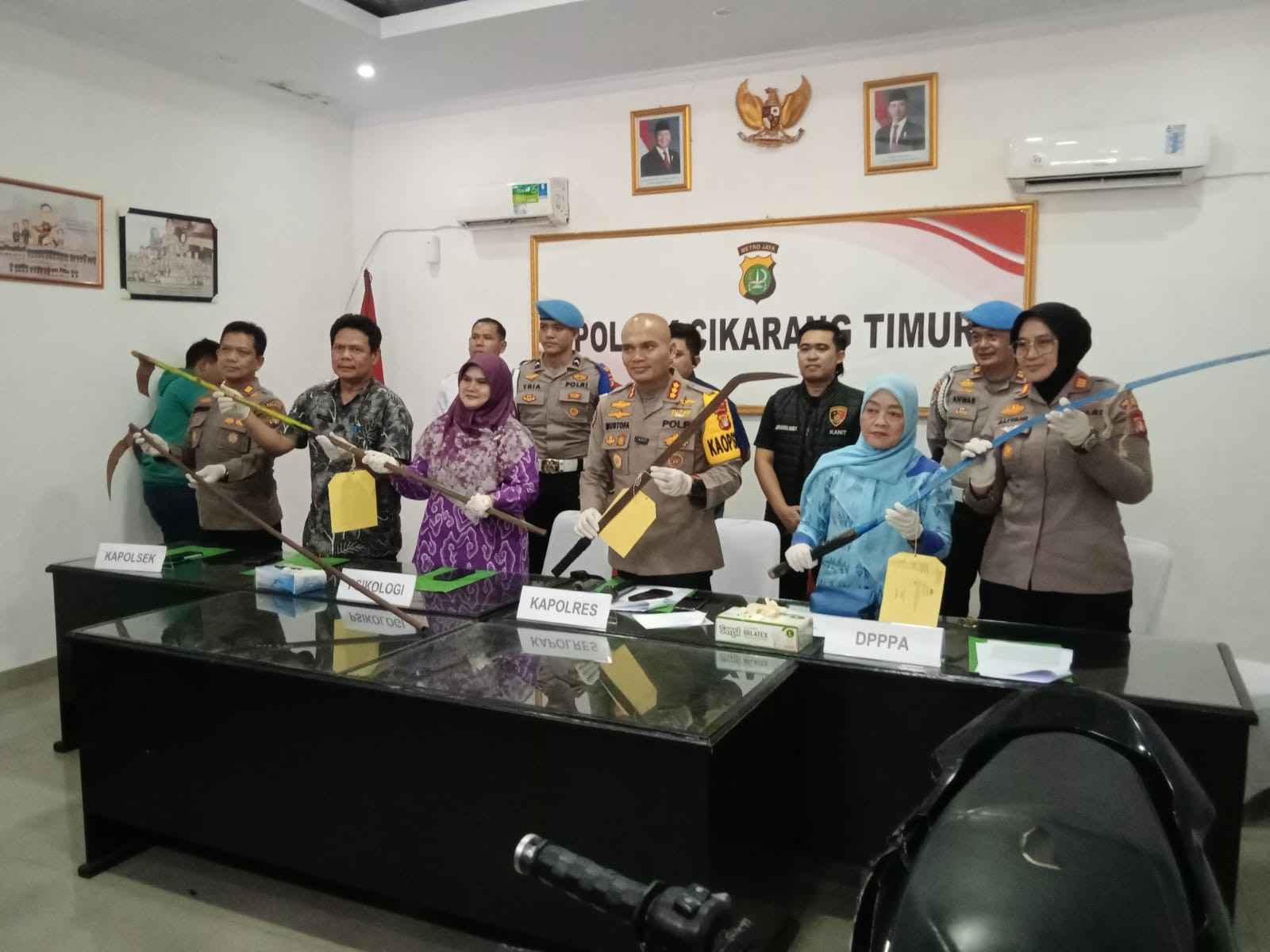 Dalam pengungkapan kasus ini, polisi berhasil menyita sejumlah barang bukti berupa senjata tajam yang digunakan pelaku untuk menyerang, termasuk celurit panjang dan berbagai senjata rakitan. Barang bukti tersebut ditunjukkan dalam konferensi pers dengan menghadirkan jajaran pejabat kepolisian, pihak Dinas Pemberdayaan Perempuan dan Perlindungan Anak (DPPPA), serta ahli psikologi.