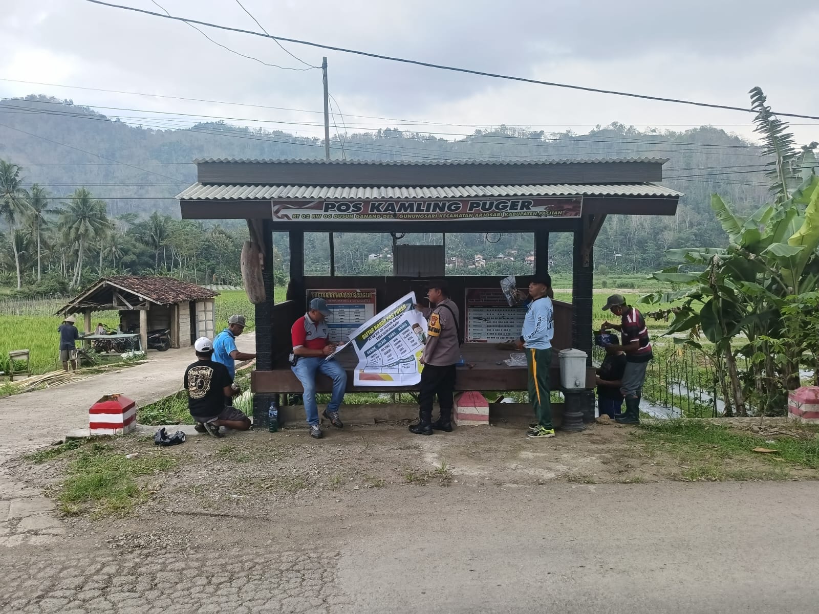 “Kami bersama anggota Polsek dan juga hansip serta warga masyarakat dusun Ganang bekerja sama mempersiapkan dan memperbaiki Pos Kamling ini supaya terlihat lebih bagus dari sebelumny, “ungkap Serma Suhadi.