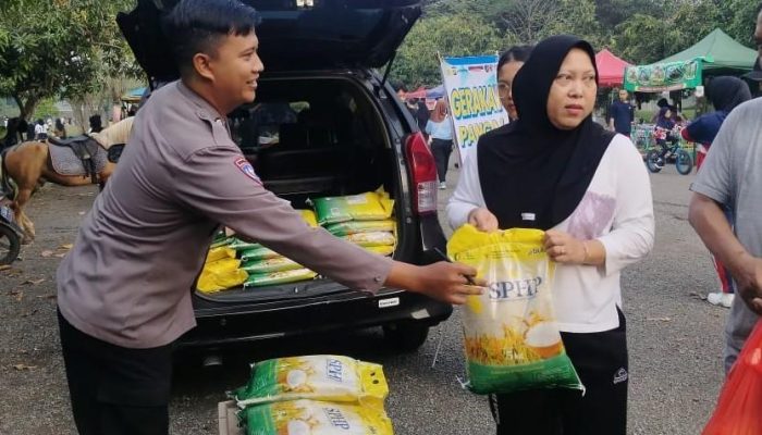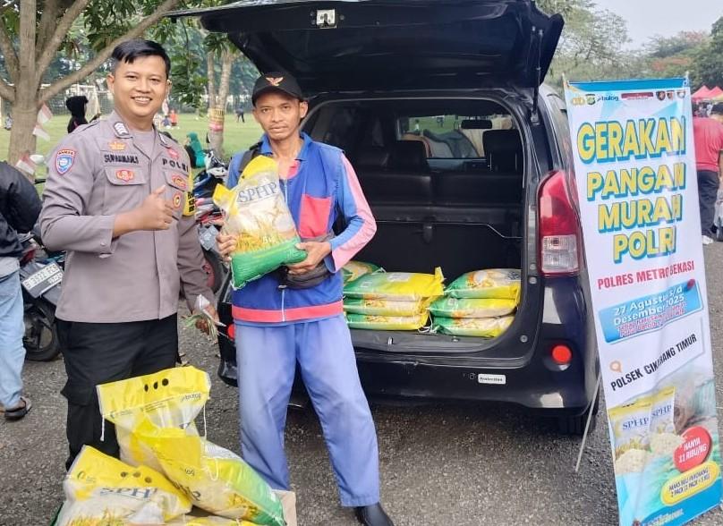 KAB BEKASI, Globalindo.Net – Dalam upaya menjaga stabilitas harga pangan dan membantu masyarakat mendapatkan kebutuhan pokok dengan harga terjangkau, Polsek Cikarang Timur bersama Perum BULOG melaksanakan kegiatan Gerakan Pangan Murah Polri dengan penjualan beras SPHP (Stabilisasi Pasokan dan Harga Pangan).