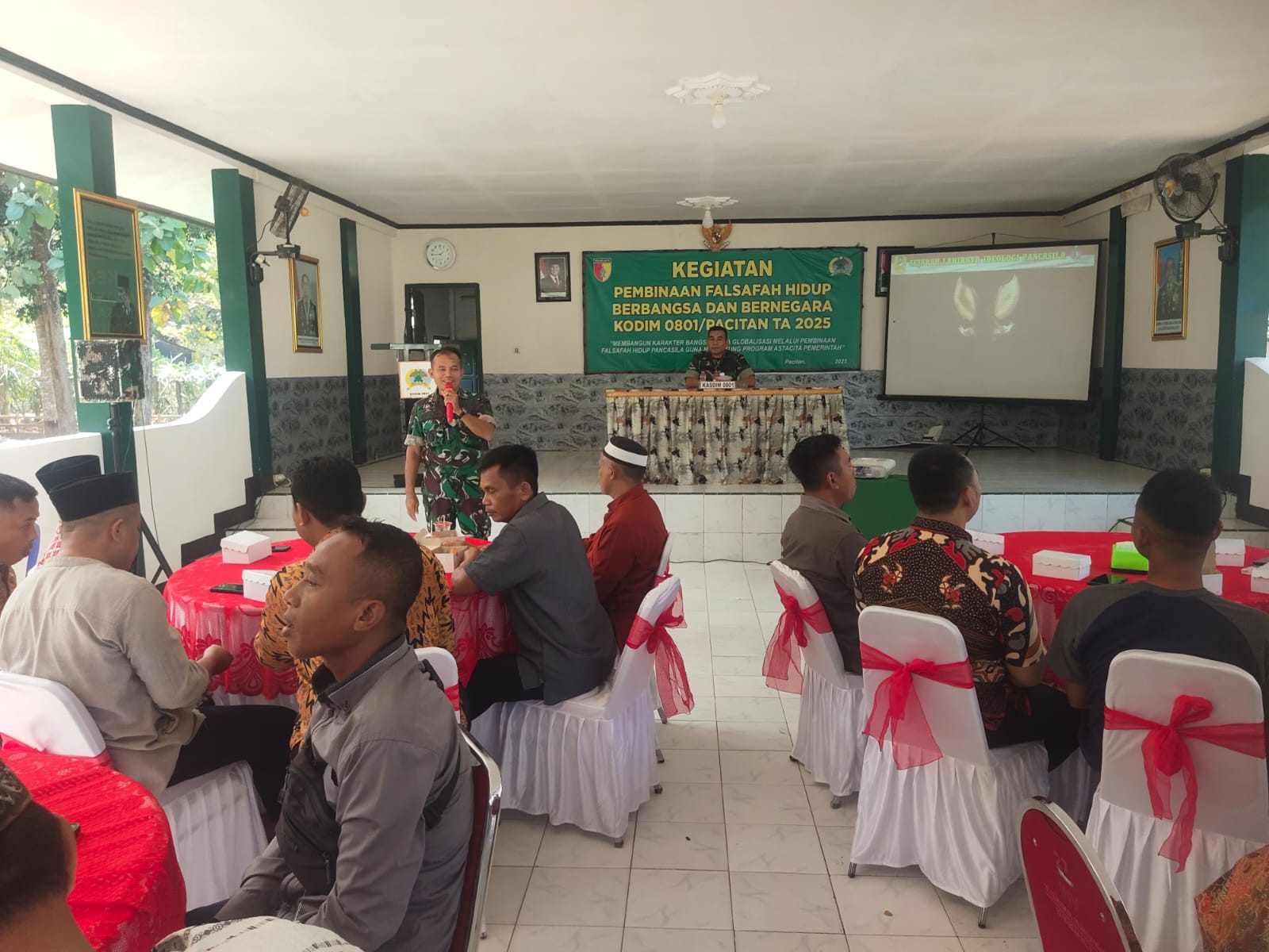 Pacitan, – Kodim 0801/Pacitan menggelar kegiatan Pembinaan Falsafah Hidup Berbangsa dan Bernegara Tahun Anggaran 2025 dengan mengangkat tema “Membangun Karakter Bangsa di Era Globalisasi Melalui Falsafah Hidup Pancasila Guna Mendukung Program Asta Cita Pemerintah” di Aula Kopral Sigit Makodim 0801/Pacitan Jln. Letjend Suprapto No. 42, Pacitan, pada Selasa (16/9/2025).