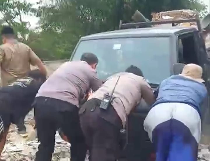 Melihat kondisi tersebut, AKP Sugiharto tidak segan turun tangan membantu mendorong kendaraan warga. Selain itu, ia juga mengatur lalu lintas di lokasi yang cukup ramai dilalui warga. Jalan tersebut diketahui amblas akibat tergerus aliran air sungai, sehingga rawan kecelakaan.